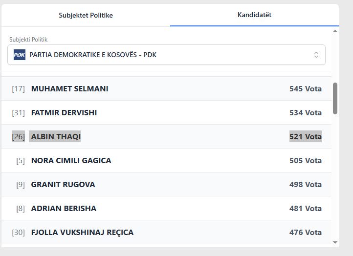 Ky rezultat vjen pavarësisht emrit të njohur familjar dhe mbështetjes brenda subjektit, duke reflektuar garën e fortë brenda listës së PDK-së në kryeqytet.