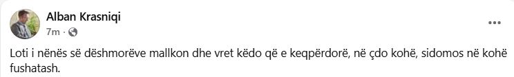 “Loti i nënës së dëshmorëve mallkon dhe vret këdo që e keqpërdorë, në çdo kohë, sidomos në kohë fushatash”, ka shkruar Krasniqi.