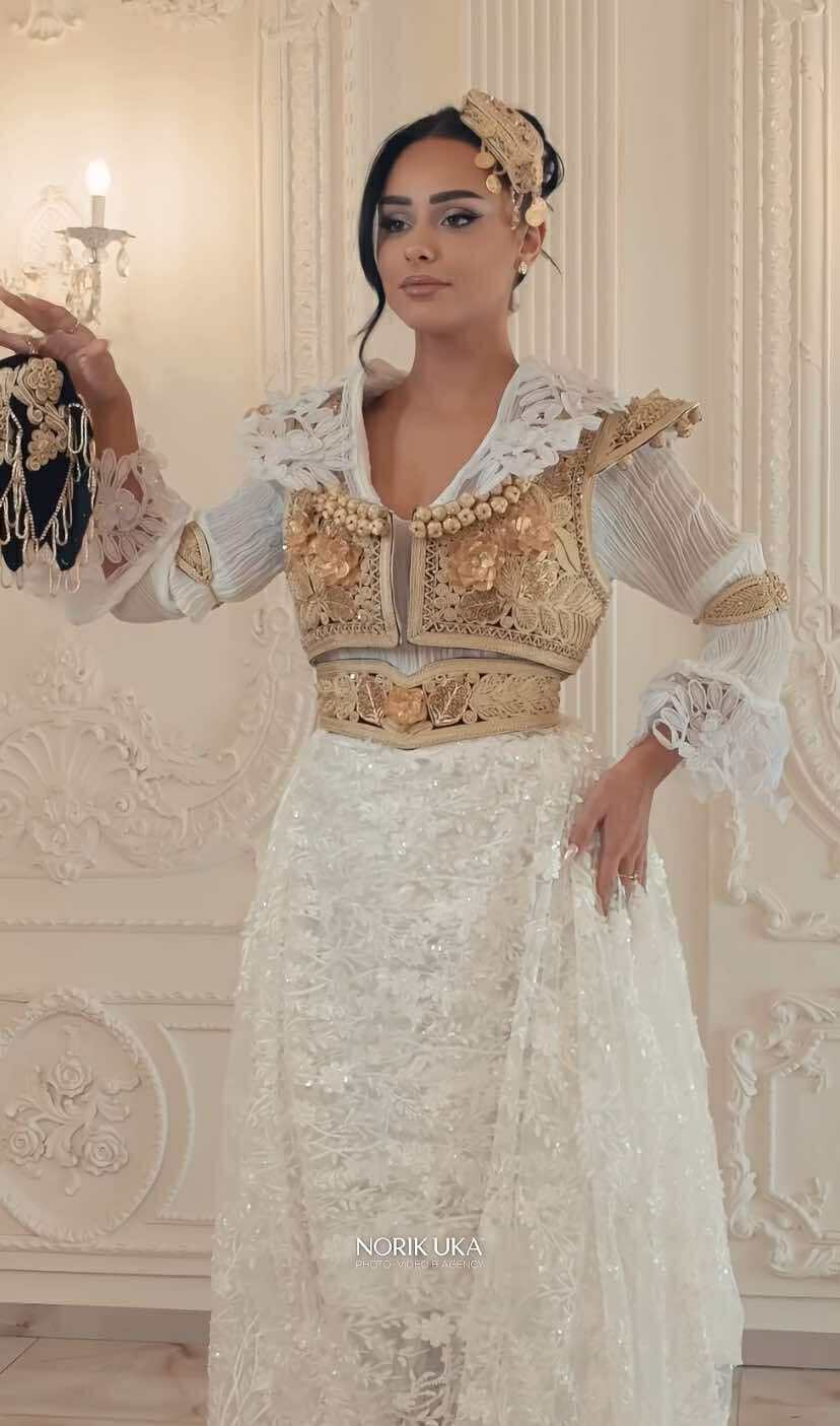 Ajo ka pozuar para kamerës e veshur me kostume tradicionale shqiptare, dimija dhe jelek, duke tërhequr vëmendjen e ndjekësve.