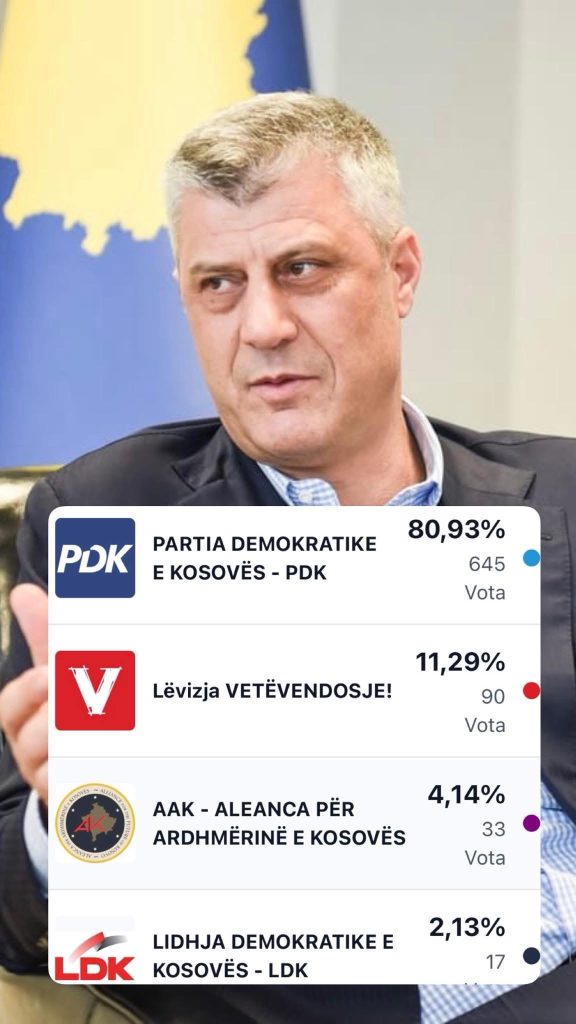 Kaq vota mori Vetëvendosje në fshatin e Hashim Thaçit