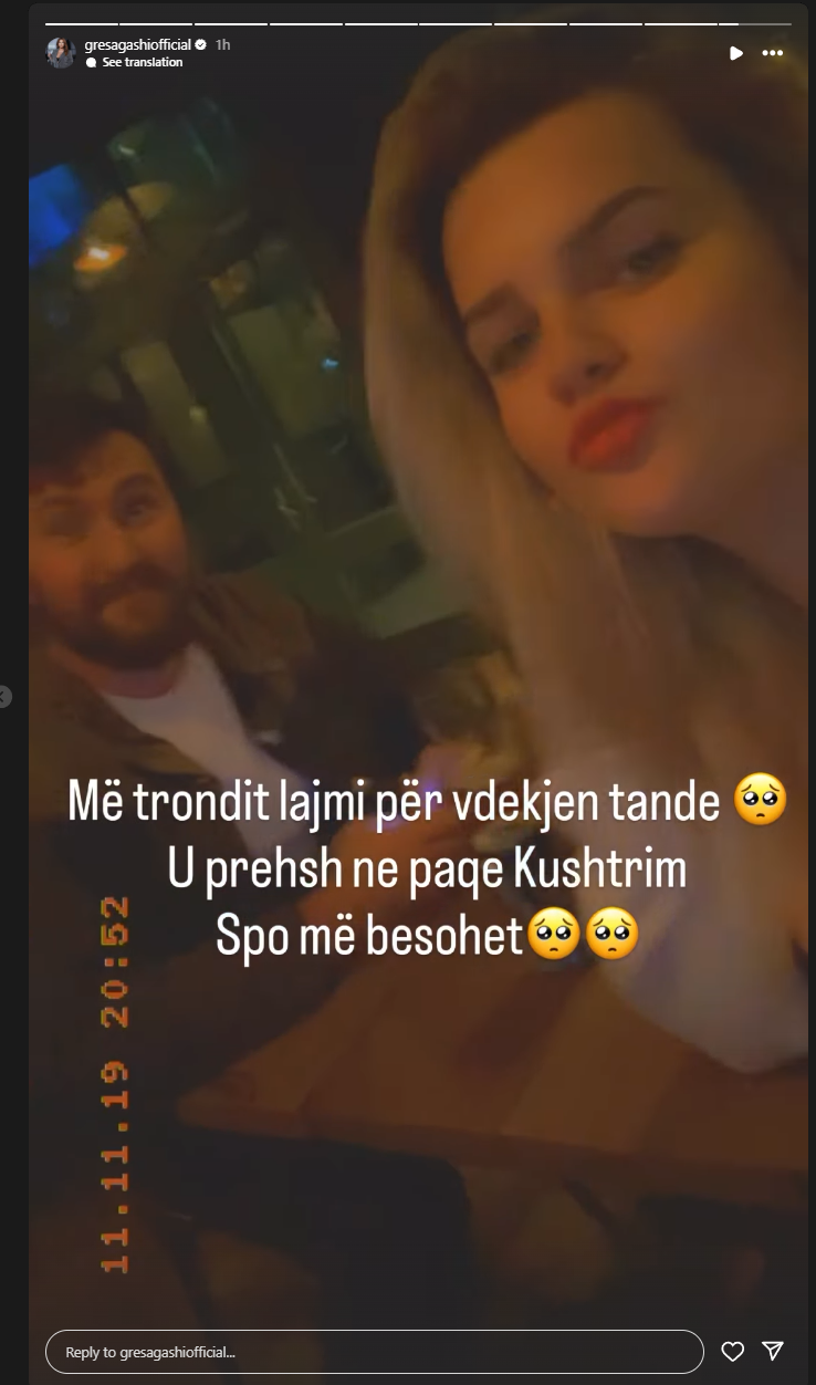 Edhe aktorja Gresa Gashi ka ndarë një moment kujtimi me të, duke shkruar: