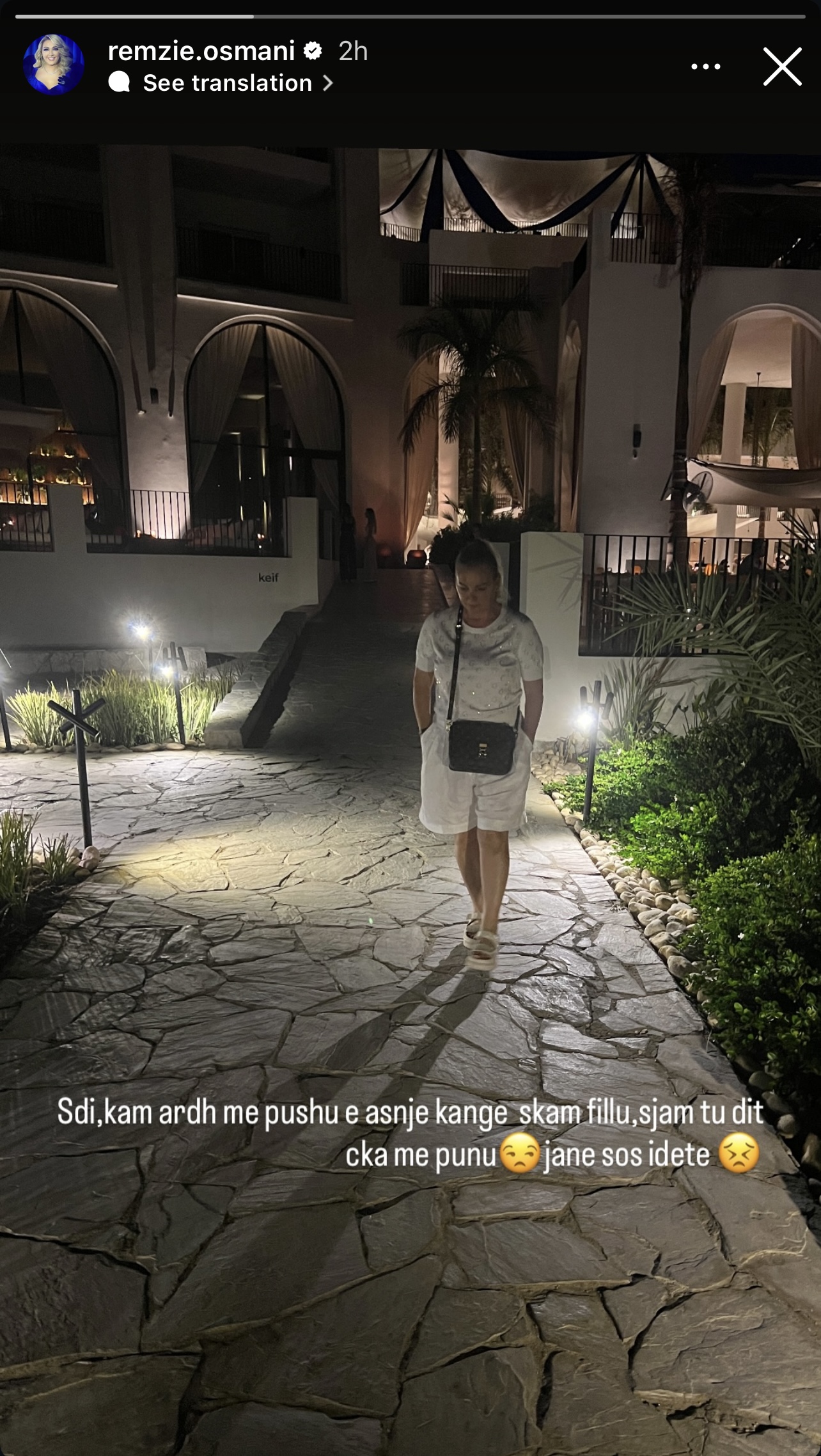 Në një postim në Instastory, Remzia ka ndarë një foto gjatë një shëtitjeje mbrëmjeje, por përshkrimi që i ka bashkangjitur fotos ka tërhequr vëmendjen e ndjekësve.